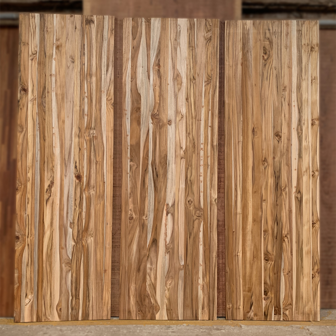 Teca, es conocida por ser una de las maderas más codiciada en el mundo de la decoración, tiene un color dorado intenso y una amplia gama de colores desde rojizo hasta tonos pálidos, su resistencia a la humedad hace que sea ideal para cualquier espacio de interior o exterior.